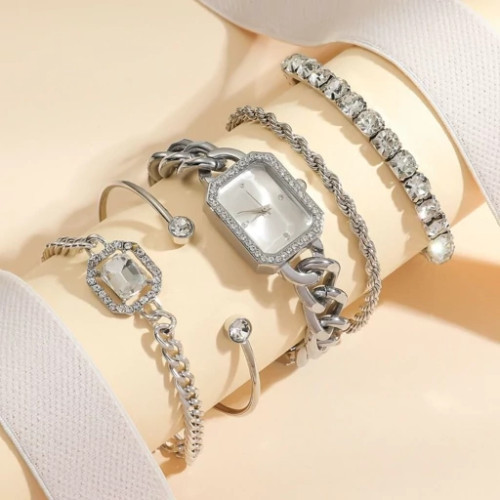 ساعت مچی زنانه ست کامل پنج تیکه کارتیر رنگ ثابت شیشه الماسی ضداب کیفیت عالیCARTER
