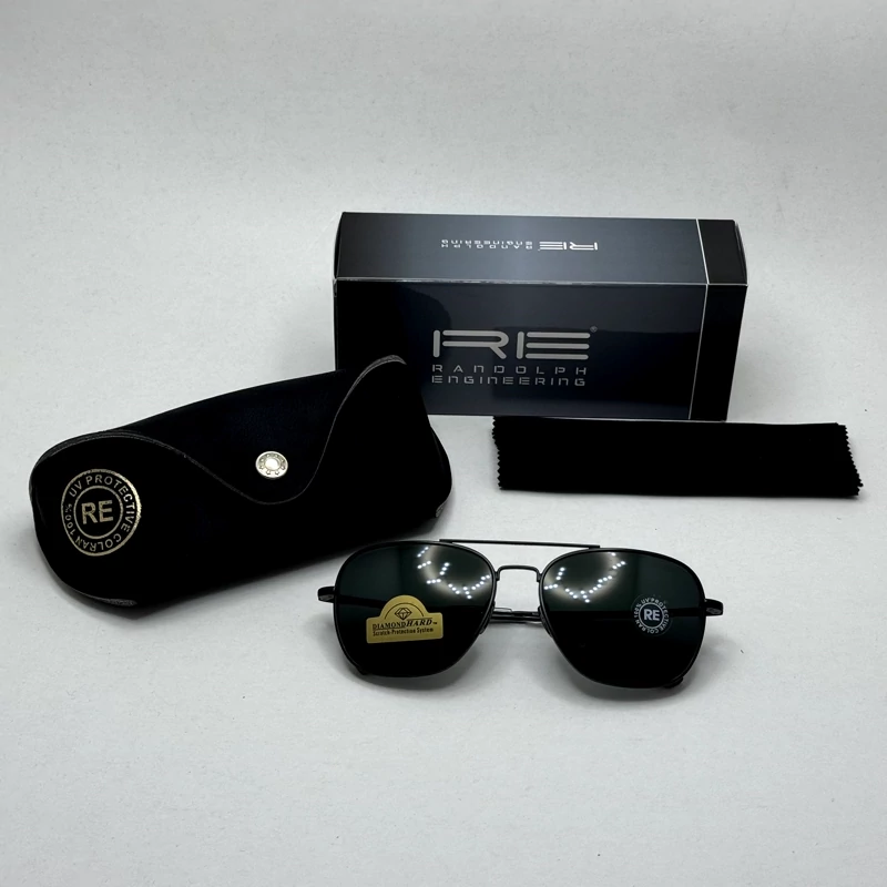 عینک آفتابی خلبانی رندولف شیشه سنگ آنتی رفلکس مشکی فریم مشکی فول پک RANDOLPH AVIATOR RE 58 BLACK