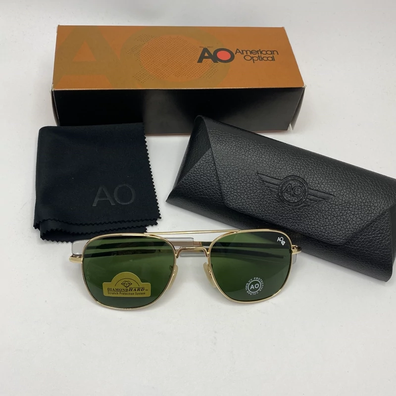 عینک AO آمریکن اپتیکال شیشه سنگ سبز با پک کامل اورجینال سایز 54
