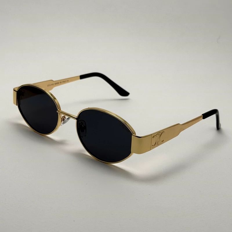 تصویر عینک آفتابی سلین CELINE بیضی طلایی مشکی کیفیت مستر به همراه کاور پارچه ای و دستمال رایگان
