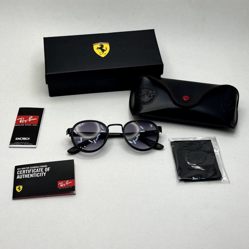 عینک آفتابی گرد ریبن فراری کریستالی با پک کامل Rayban Ferrari RB3705