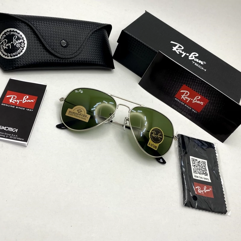 عینک ریبن reybanخلبانی با حدود 30 رنگ مختلف شیشه سنگ با پک کامل اورجینال