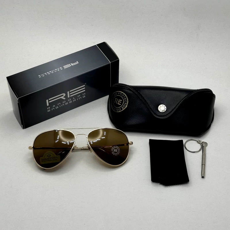 عینک آفتابی خلبانی رندولف شیشه سنگ مدل کانکورد آنتی رفلکس قهوه ای طلایی فول پک RANDOLPH CONCORD CR 231 24K GOLD