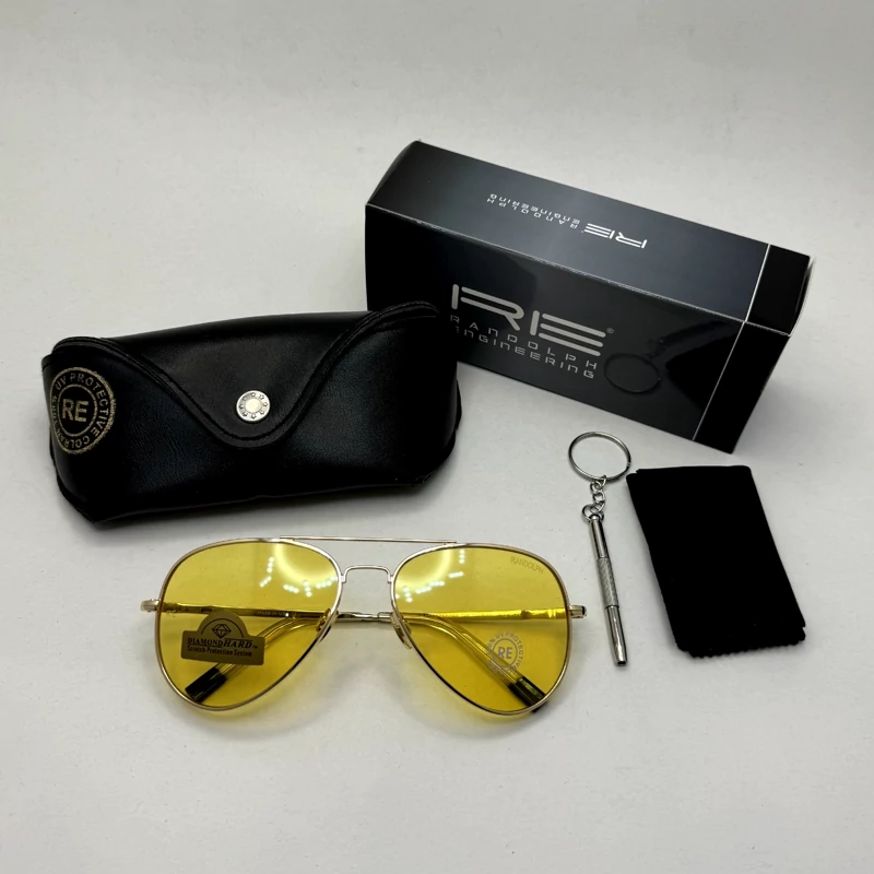 عینک آفتابی و شب خلبانی رندولف شیشه سنگ مدل کانکورد عدسی زرد فریم طلایی فول پک RANDOLPH CONCORD CR 231 24K GOLD