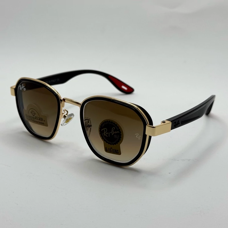 عینک ریبن شیشه سنگ قهوه ای با فریم طلایی براق فول پک اورجینال