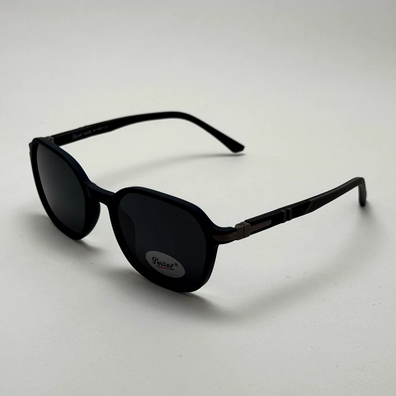 تصویر عینک آفتابی پلاریزه پرسول PERSOL فریم سرمه ای دسته مشکی لولا فنری فوق سبک با کد رفرنس P 3221