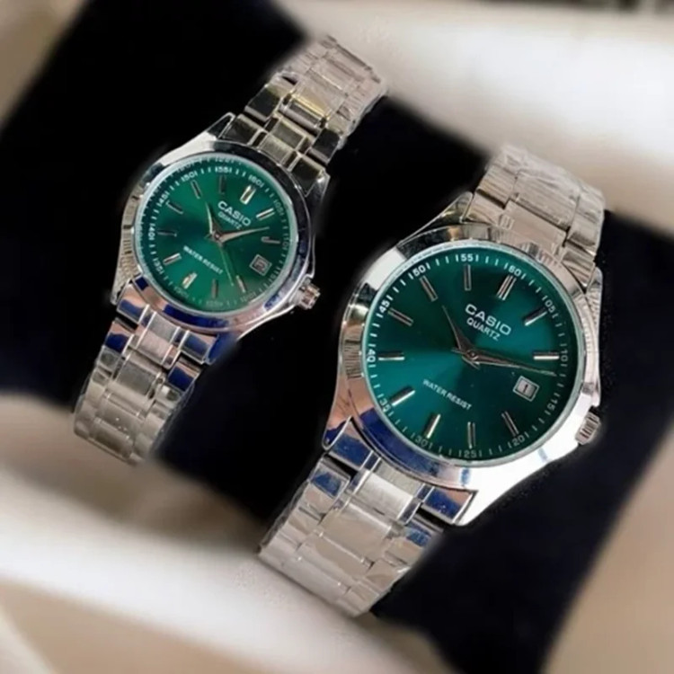 ساعت ست مردانه زنانه کاسیوcasioبند استیل نقره ای