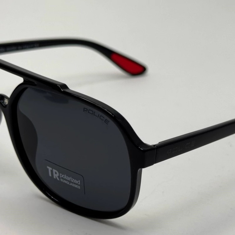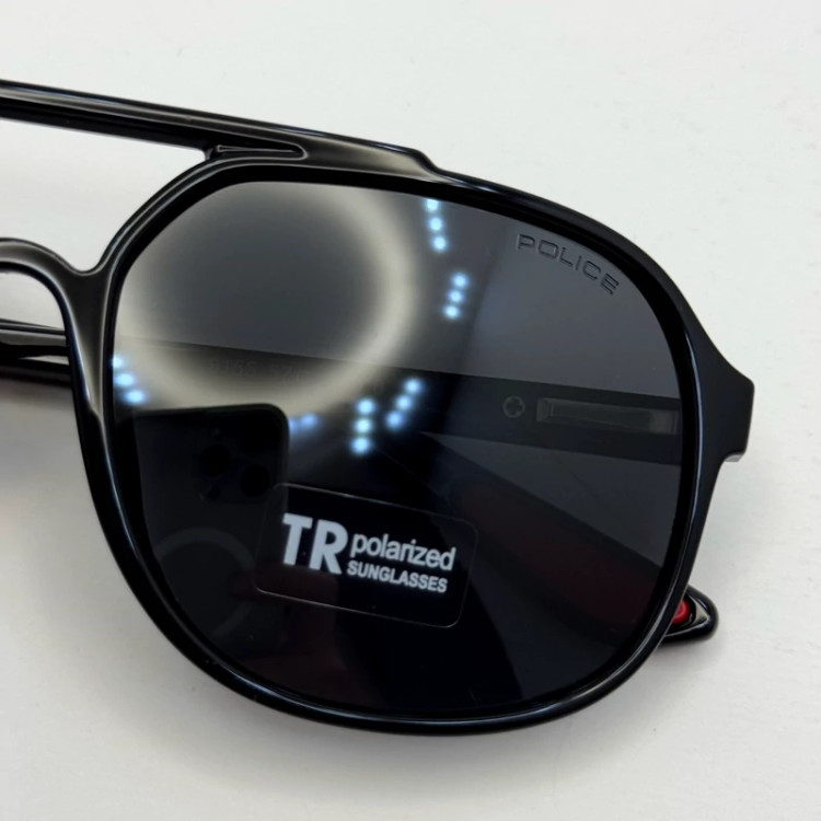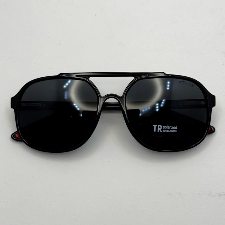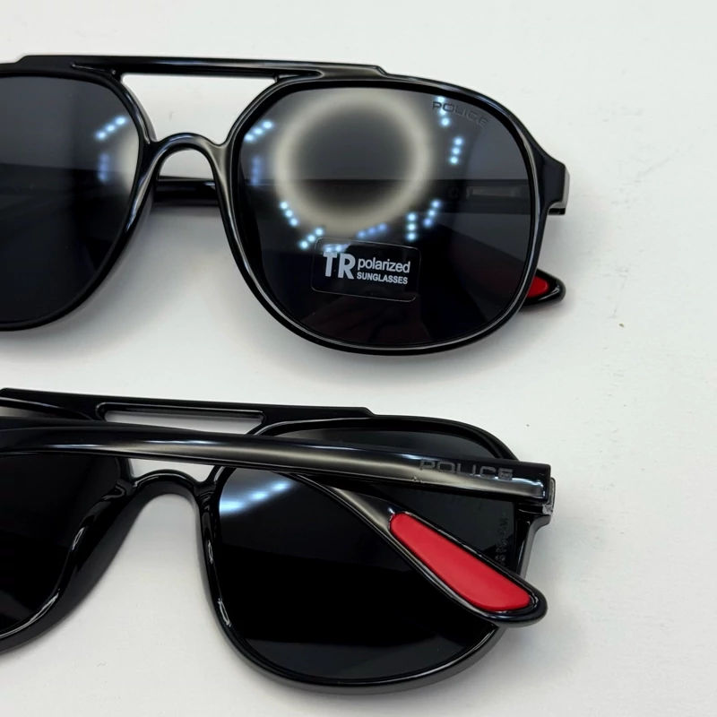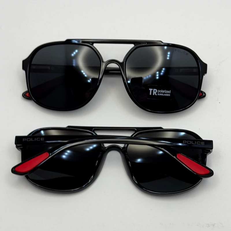 عینک آفتابی پلاریزه پلیس مشکی براق فوق سبک مناسب رانندگی و روزمره به همراه کاور پارچه ای و دستمال نانو مخصوص کد 9155