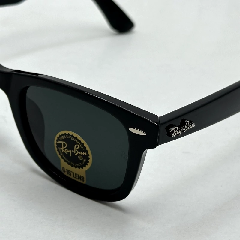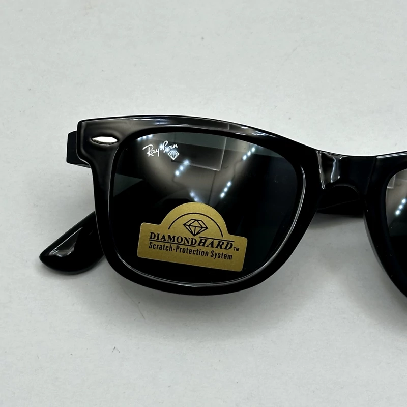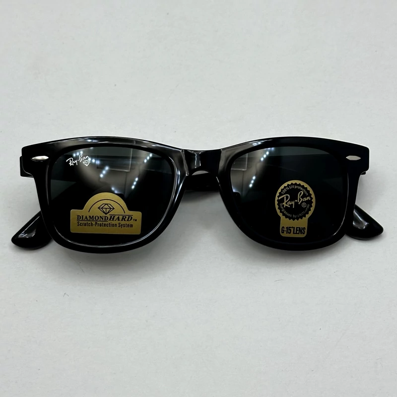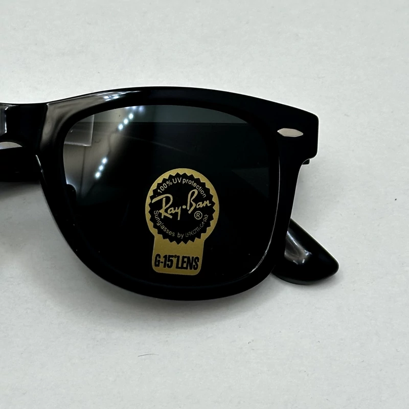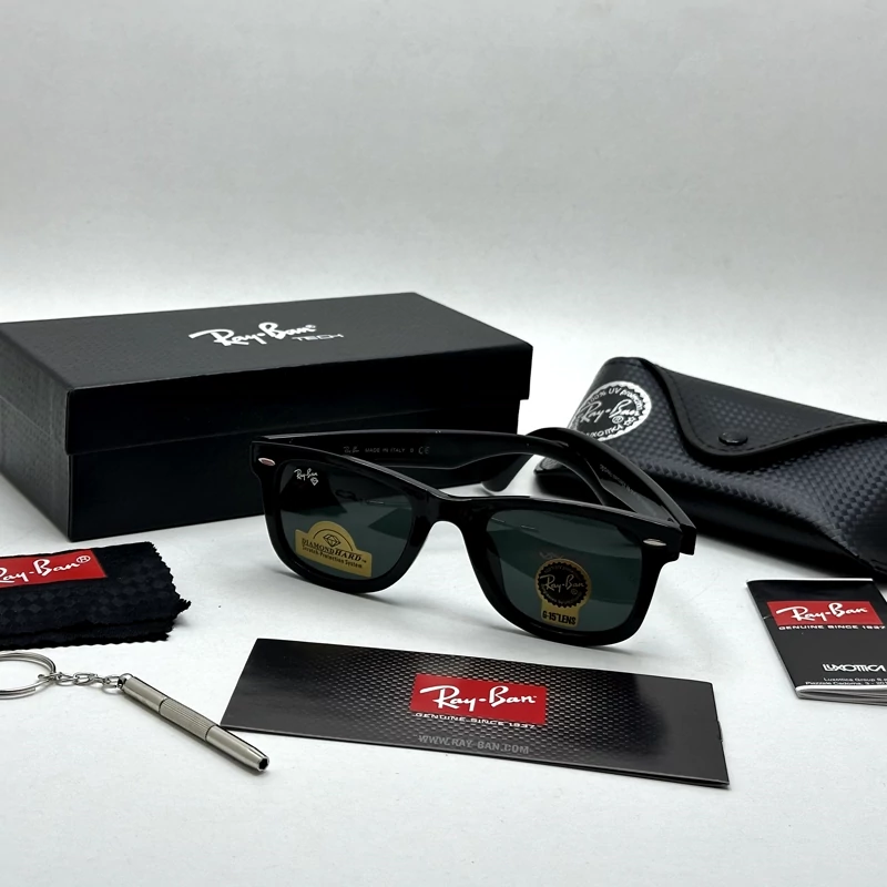 عینک آفتابی ویفرر ریبن reyban شیشه سنگ مشکی براق عدسی مشکی سایز 50 به همراه پک کامل اورجینال RB 2140