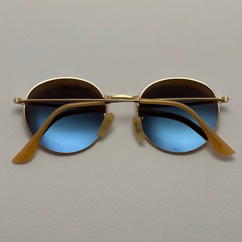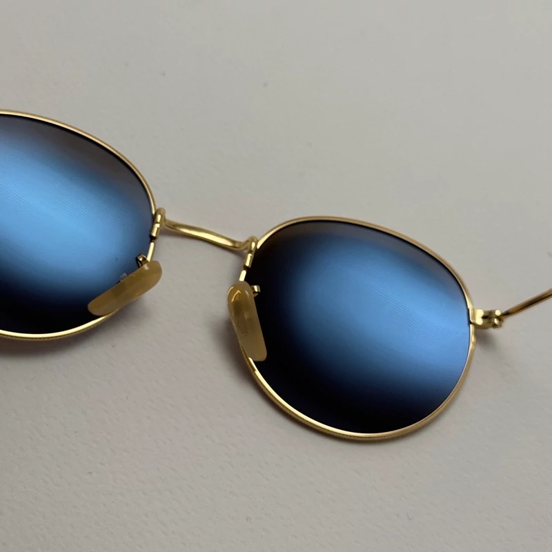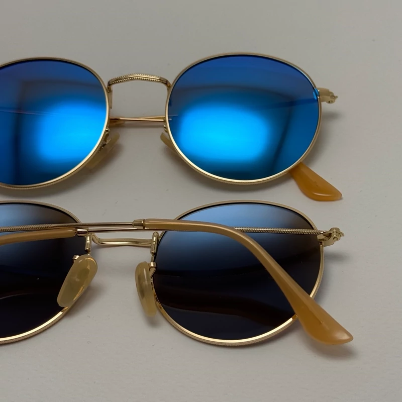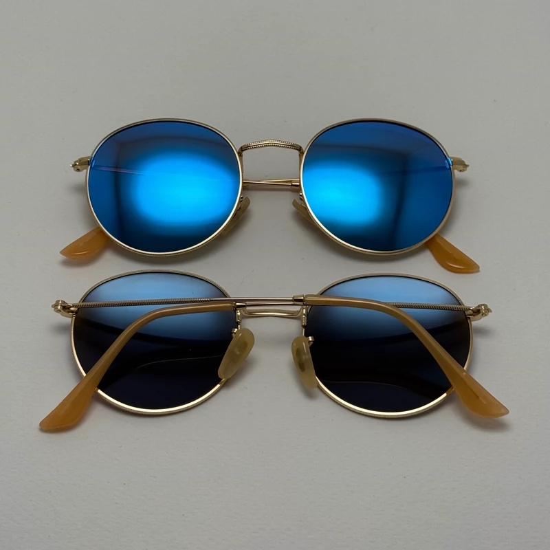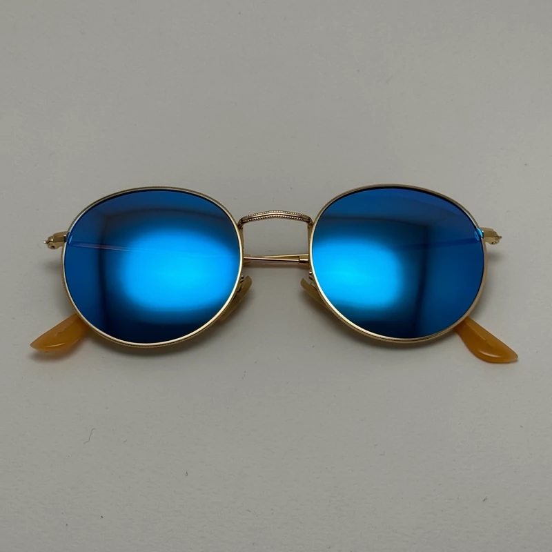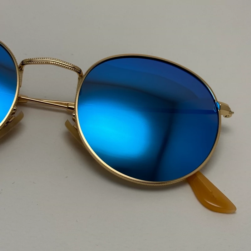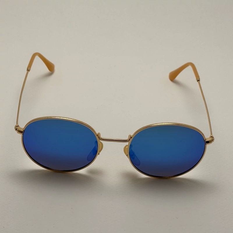 عینک آفتابی پلاریزه گرد فوق سبک آبی فریم طلایی کد 3447