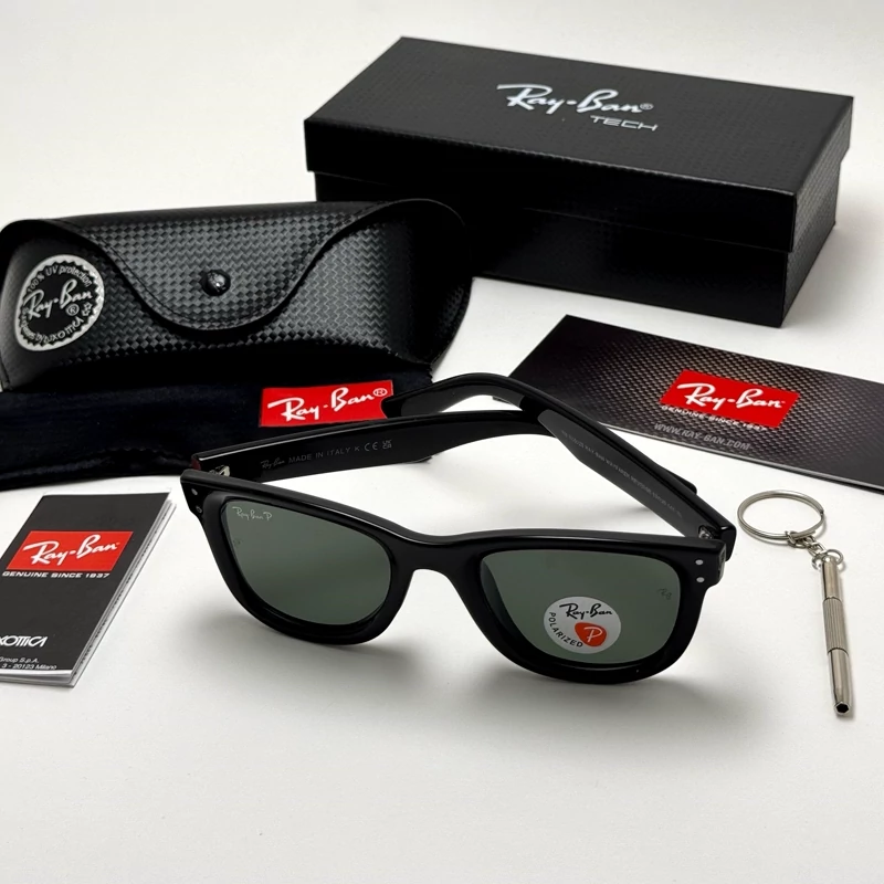 عینک آفتابی ریبن ویفرر ریورس پلاریزه سبز فریم مشکی براق به همراه پک کامل ریبن Rayban WAYFARER REVERSE RB 0502S