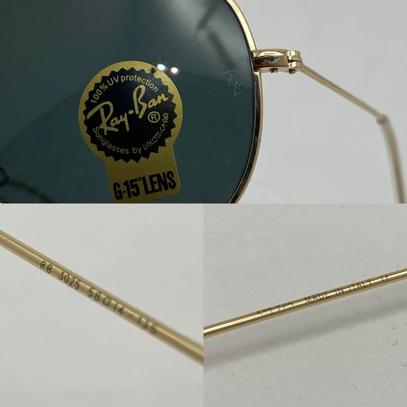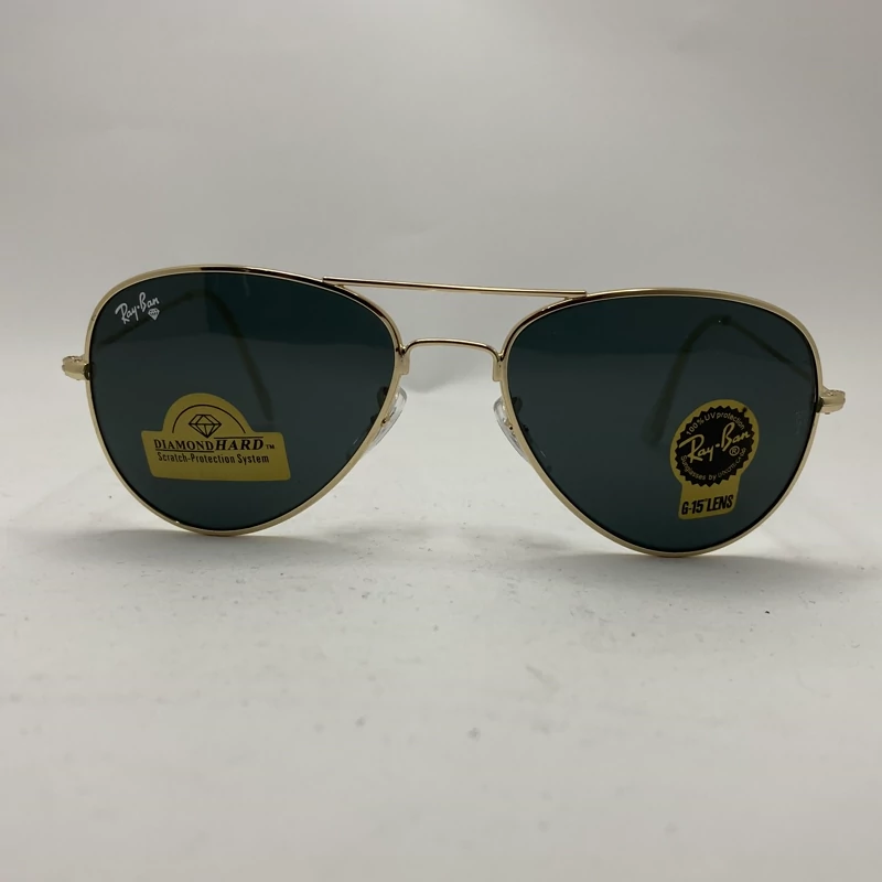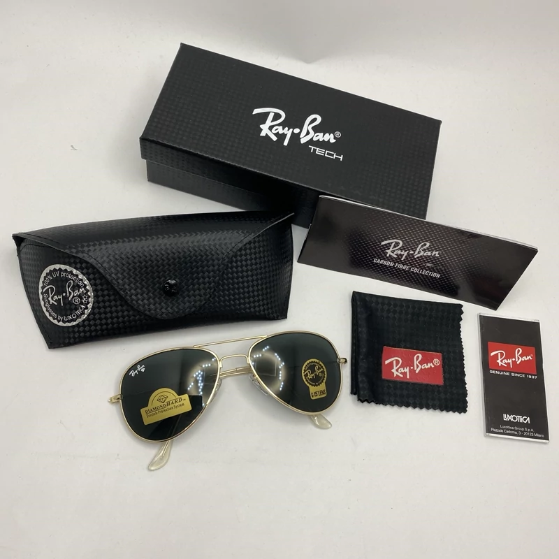 عینک آفتابی ریبن خلبانی شیشه سنگ مشکی طلایی با پک کامل اورجینال