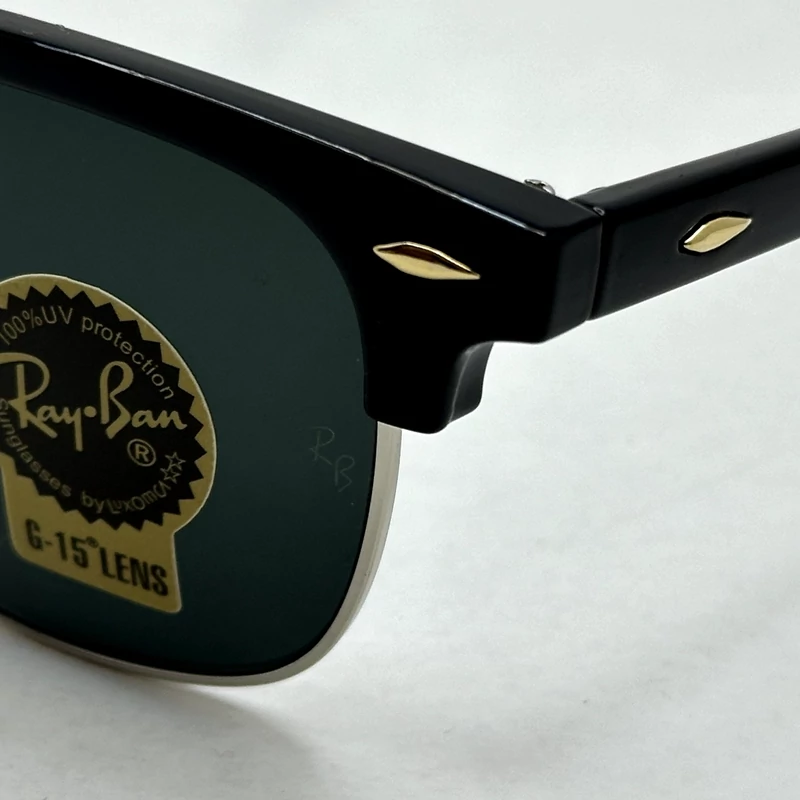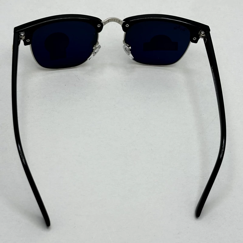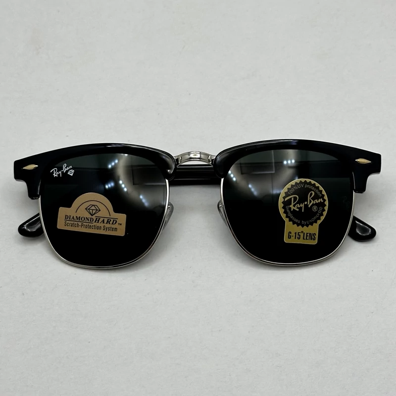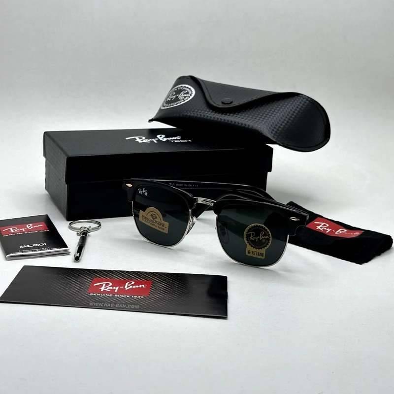 عینک آفتابی کلاب مستر ریبن rayban شیشه سنگ مشکی فریم نقره ای به همراه پک کامل RB 3016
