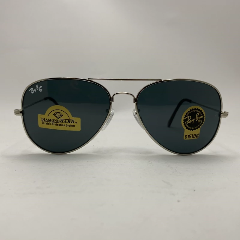 عینک آفتابی ریبن خلبانی rayban مشکی نقره ای با پک کامل ریبن