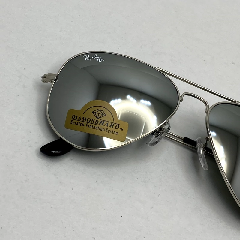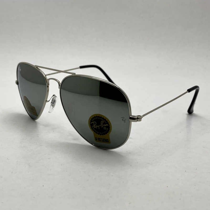 عینک آفتابی خلبانی AVIATOR ریبن rayban شیشه سنگ ایتالیایی آینه ای فریم نقره ای سایز 3025 فول پک