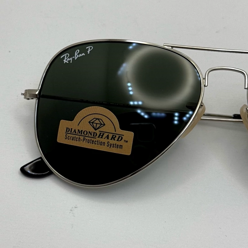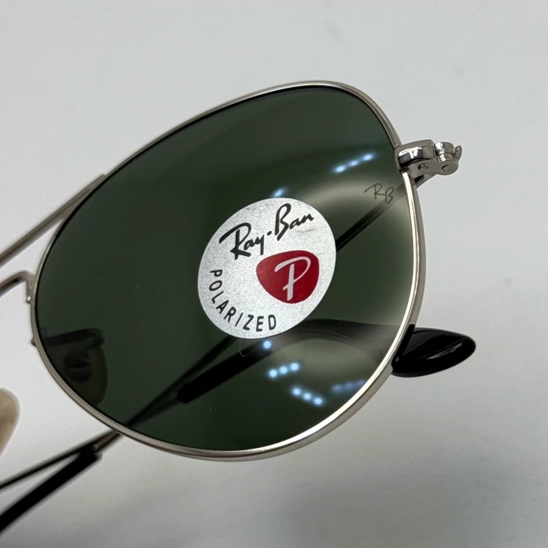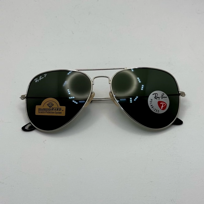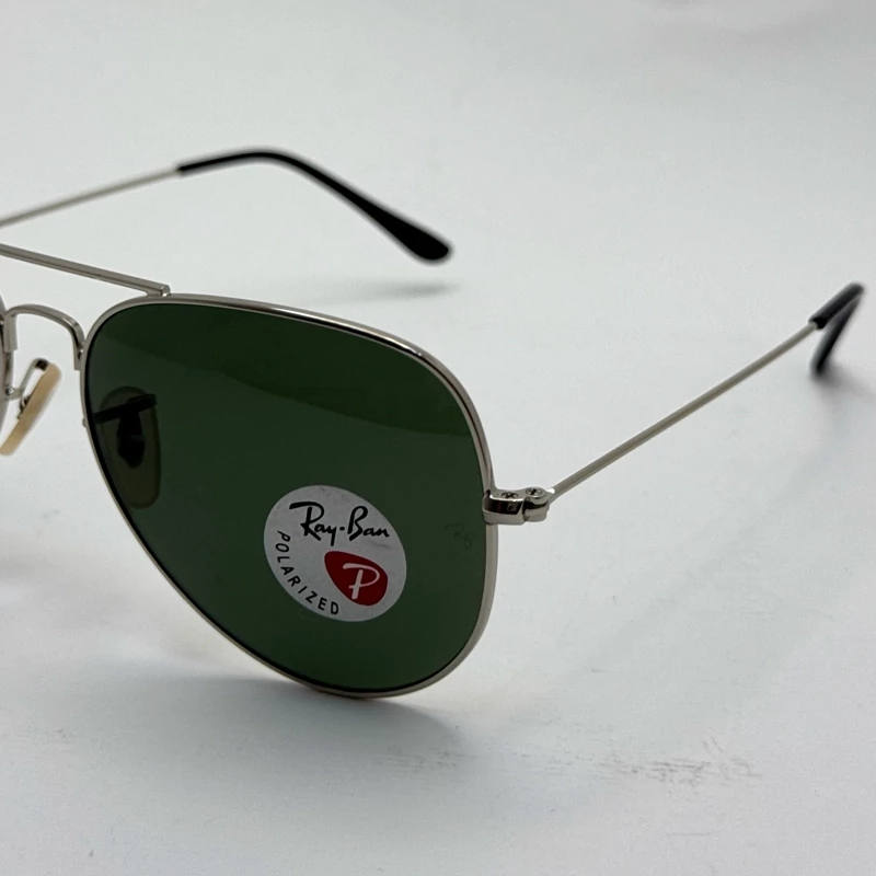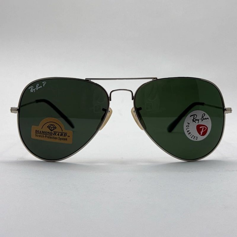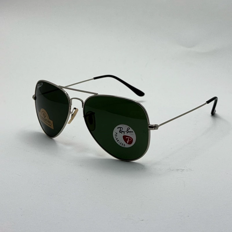 عینک ریبن خلبانی شیشه سنگ پلاریزه سبز با فریم نقره ای به همراه پک کامل ریبن کد Rayban RB 3026
