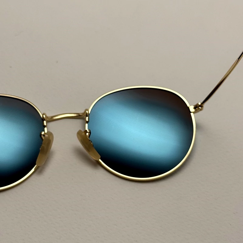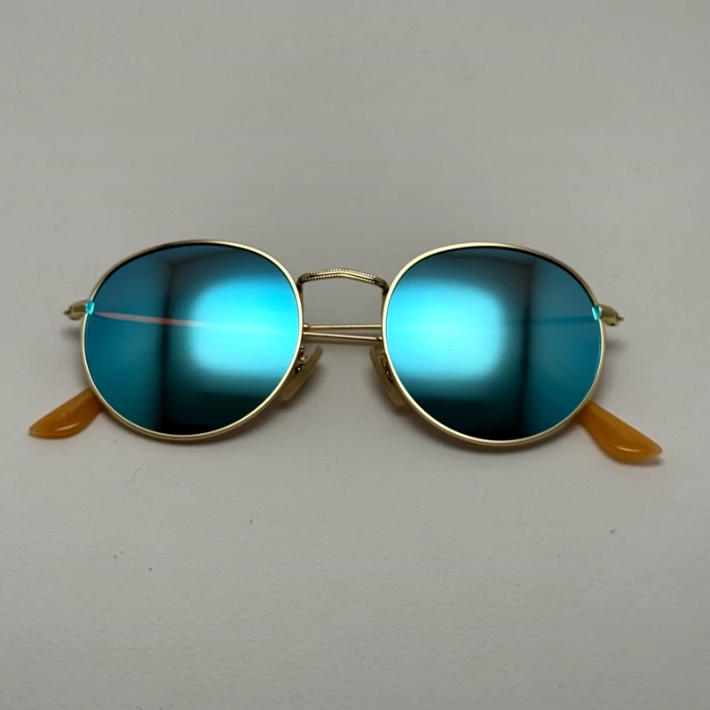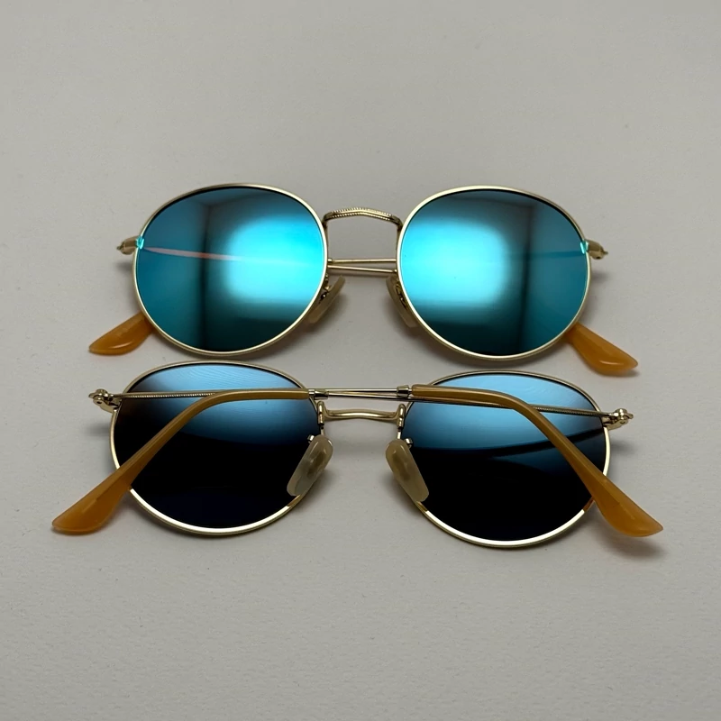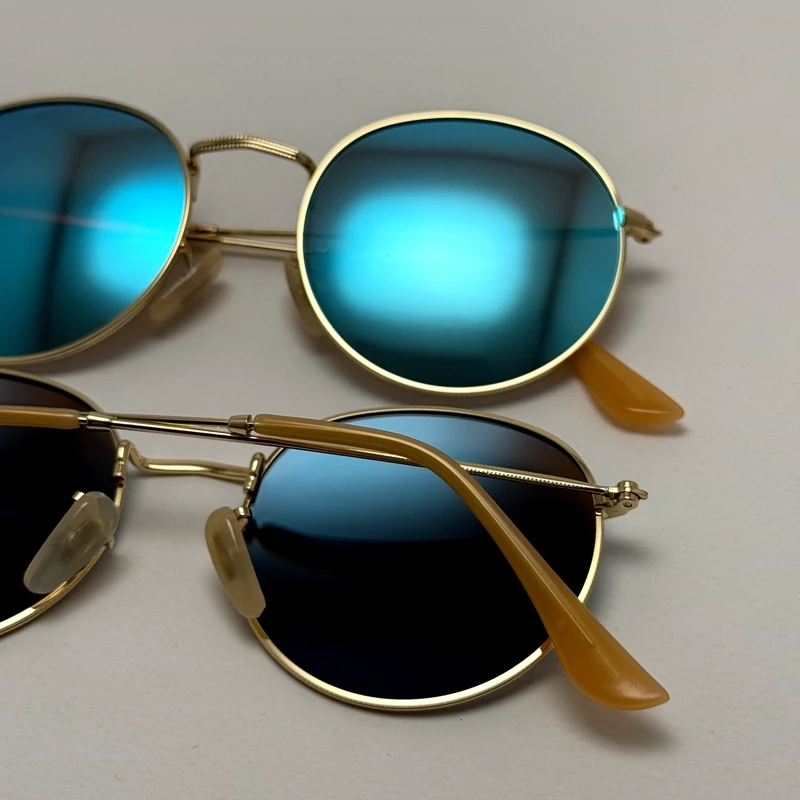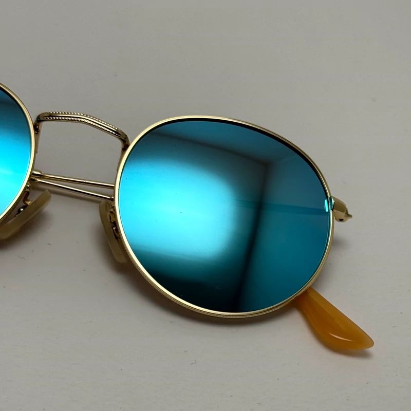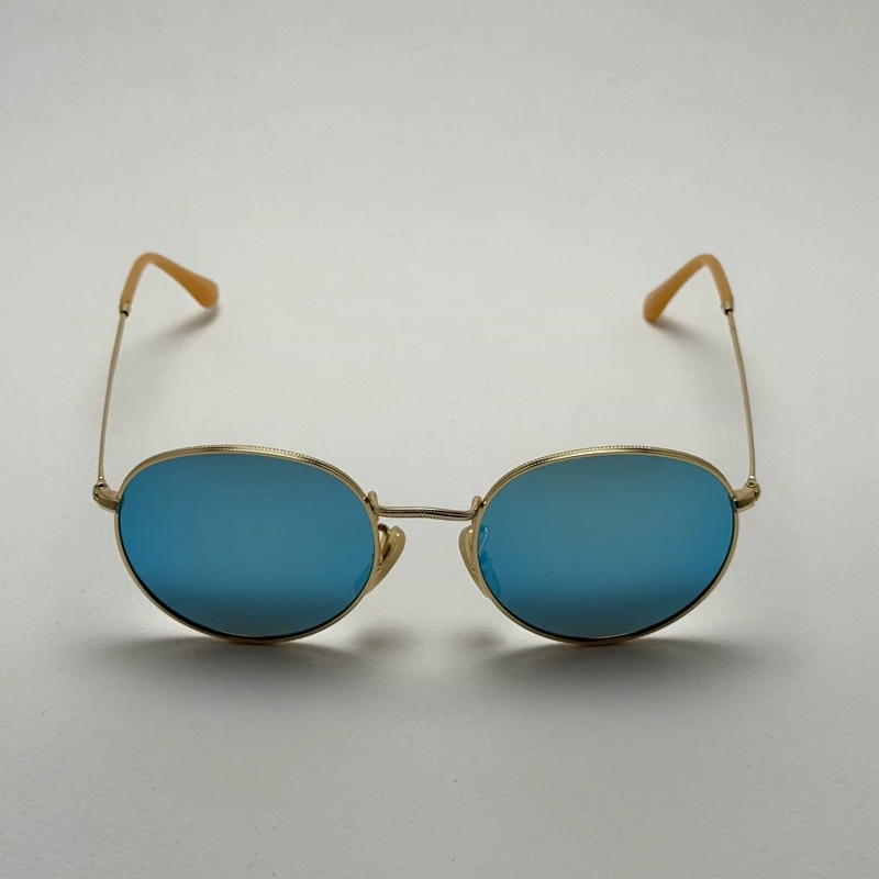 عینک آفتابی پلاریزه گرد فوق سبک آبی آسمونی فریم طلایی کد 3447