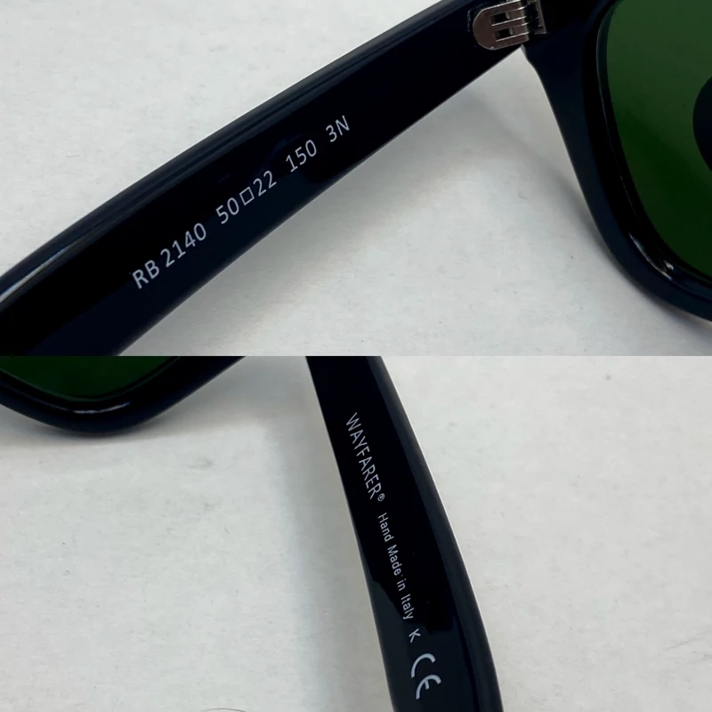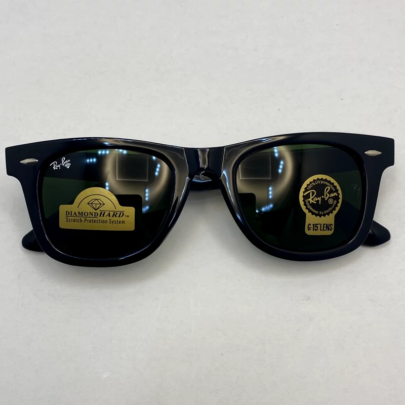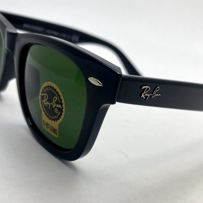 عینک آفتابی ویفرر ریبن rayban WAYFARER شیشه سنگ سبز فریم براق سایز 50 به همراه پک کامل اورجینال rb2140