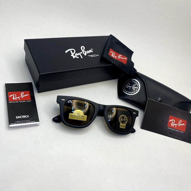 عینک آفتابی ویفرر ریبن rayban WAYFARER شیشه سنگ قهوه ای فریم مات سایز 50 به همراه پک کامل اورجینال RB2140