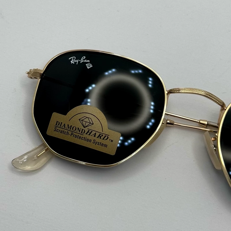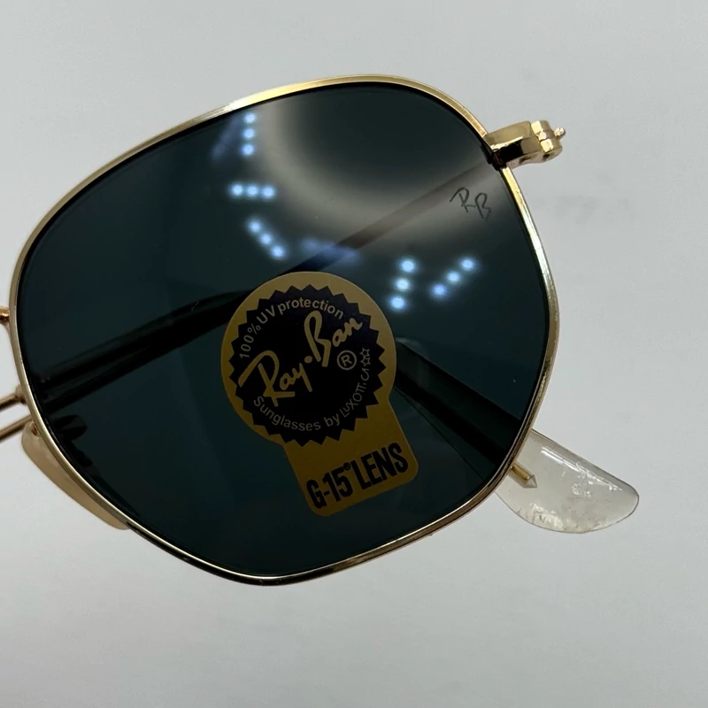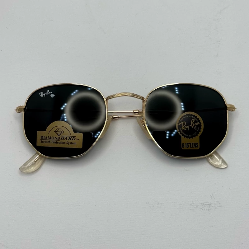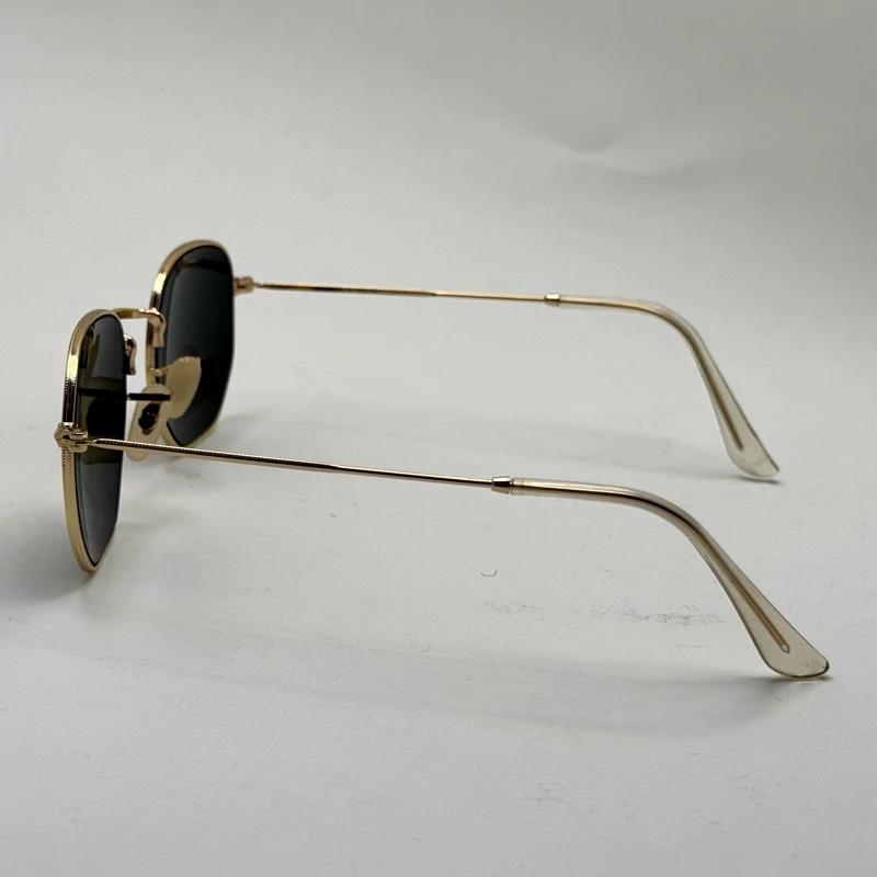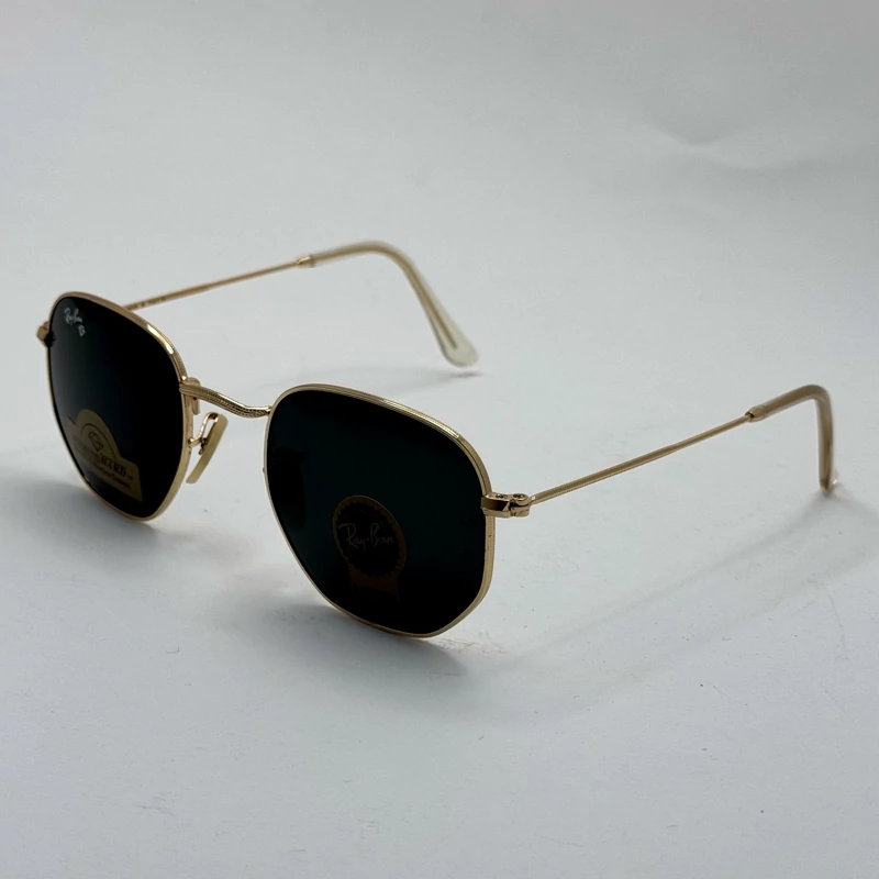 عینک ریبن هگزونال شیشه سنگ مشکی فریم طلایی به همراه پک کامل ریبن کد Rayban RB 3548