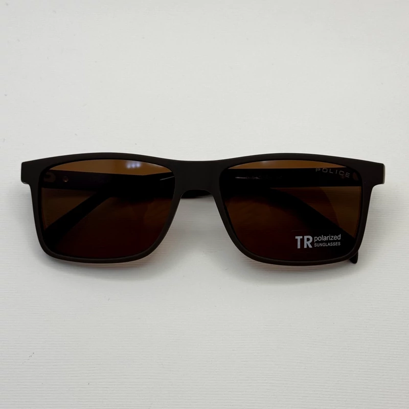 عینک آفتابی پلیس POLICE قهوه ای پلاریزه و یووی 400 به همراه کاور پارچه ای و دستمال نانو کد 1940