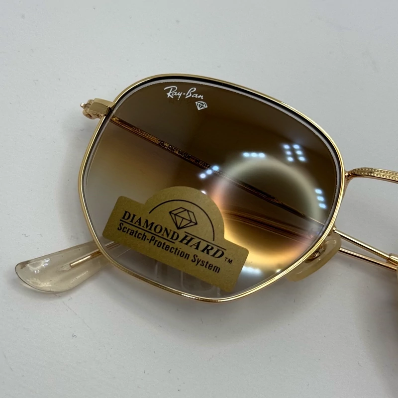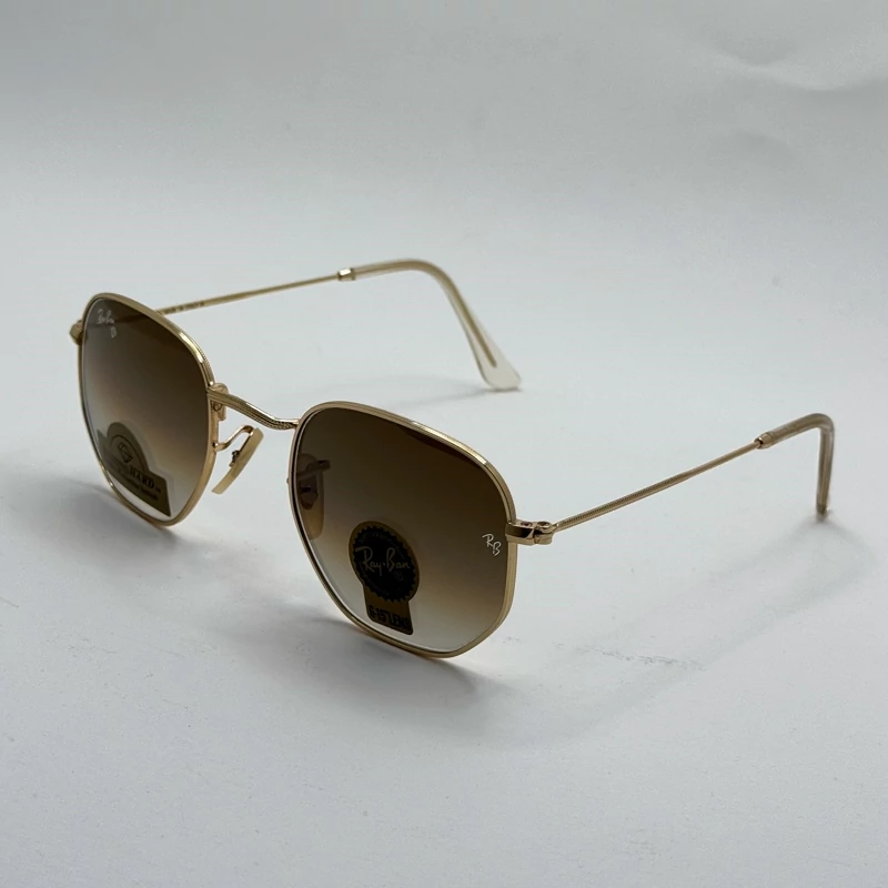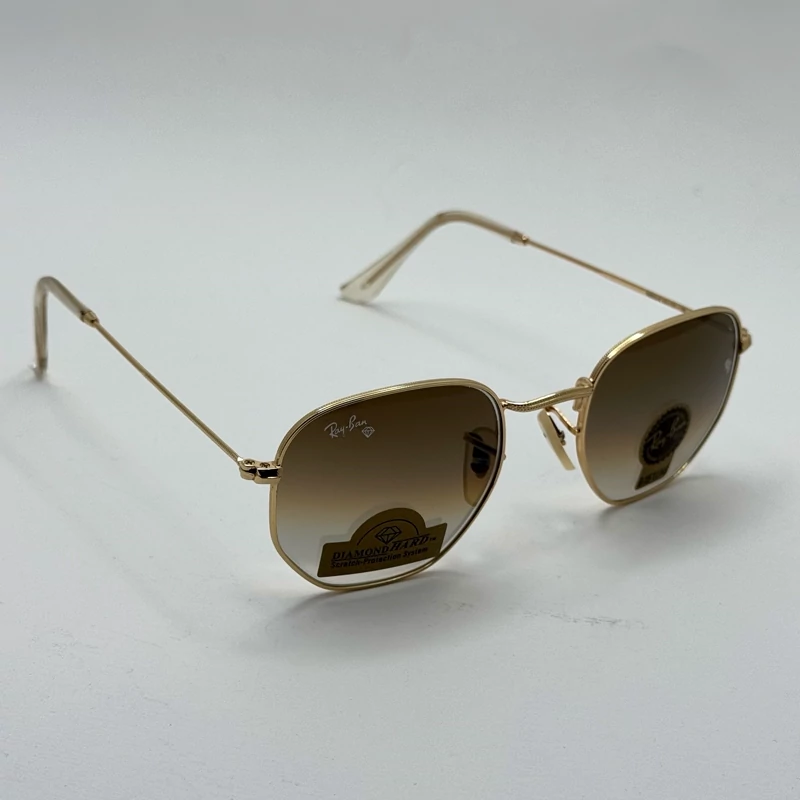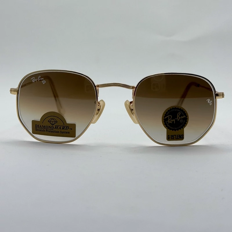عینک ریبن شیشه سنگ هگزونال قهوه ای هایلایت آنتی رفلکس به همراه پک کامل ریبن کد Rayban RB 3548