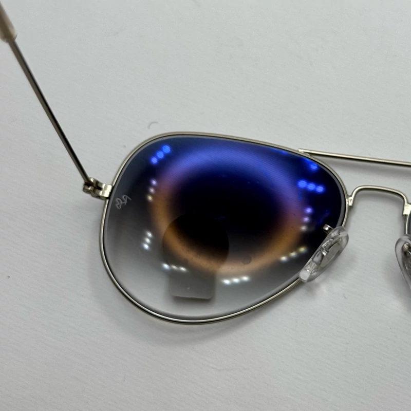عینک ریبن خلبانی شیشه سنگ آبی هایلایت فریم نقره ای به همراه پک کامل ریبن Rayban RB 3025