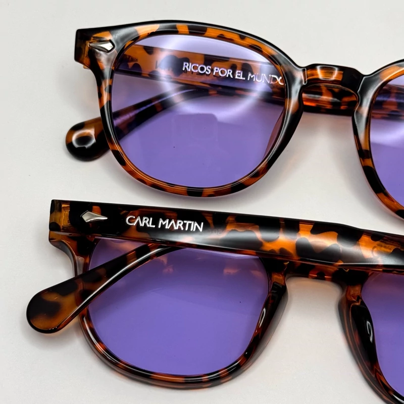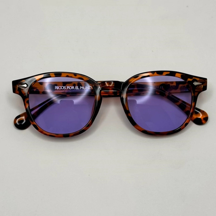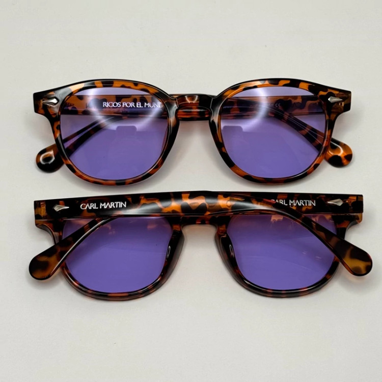 عینک آفتابی و شب گرد پلنگی با عدسی بنفش برند CARL MARTIN اسپانیایی اصلی مدل RICOS POR EL MUNDO