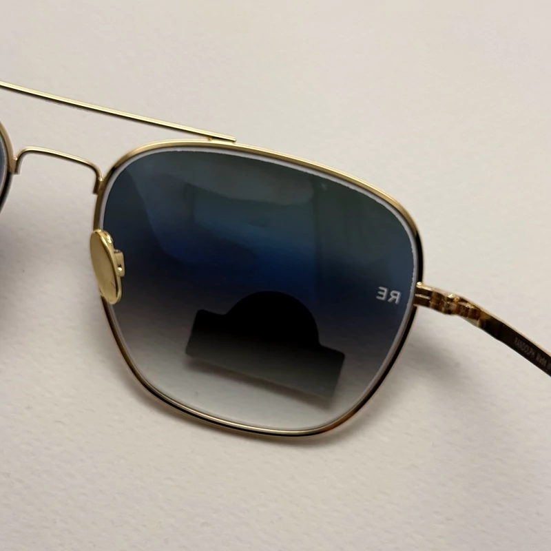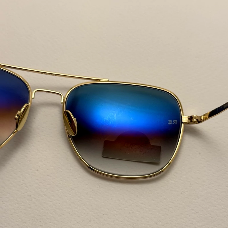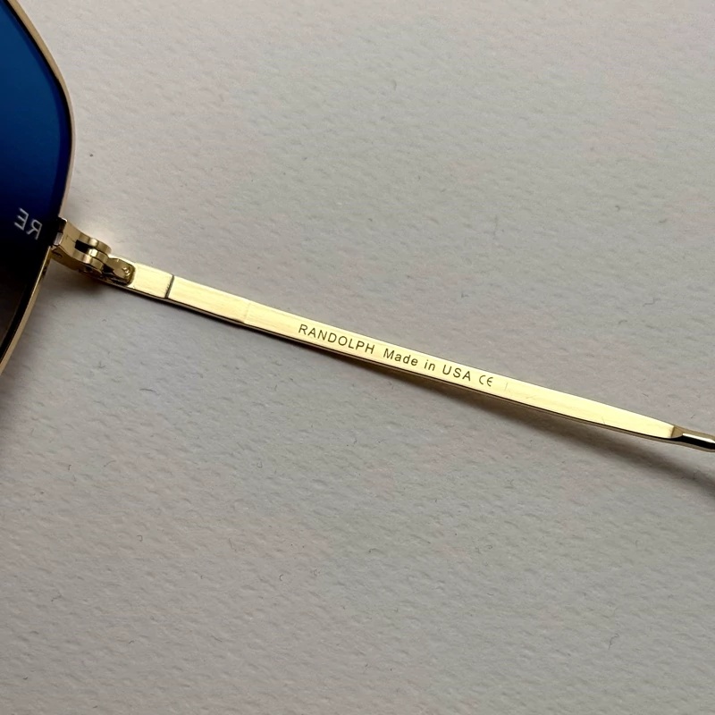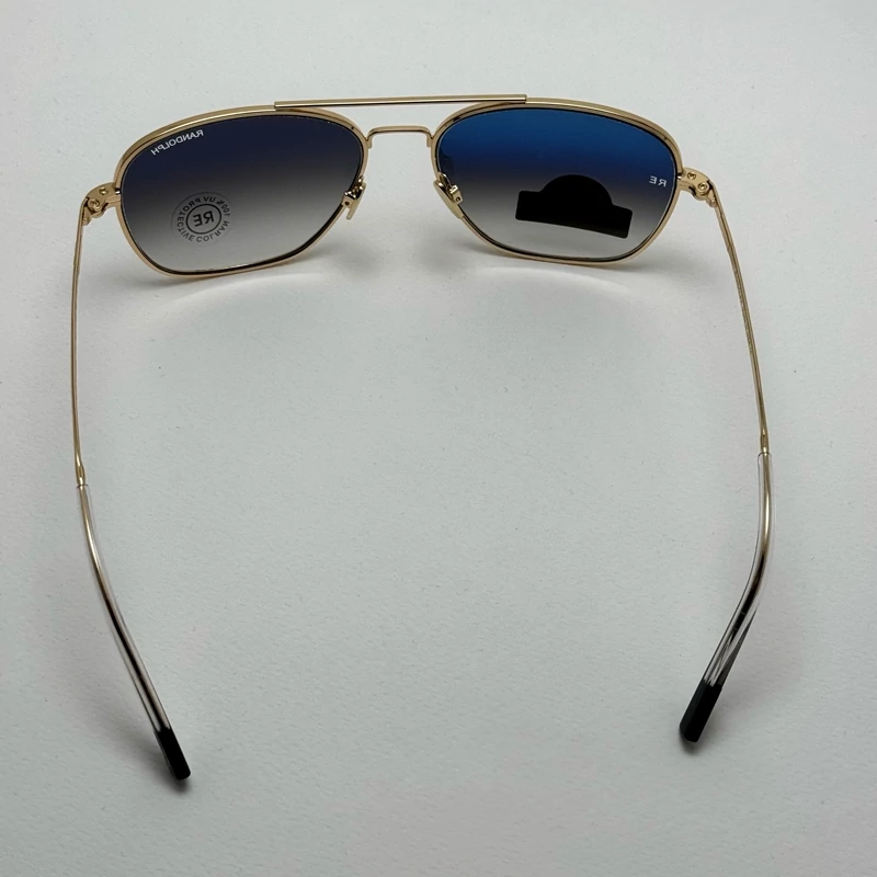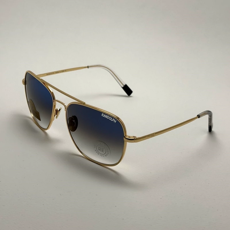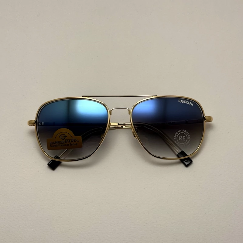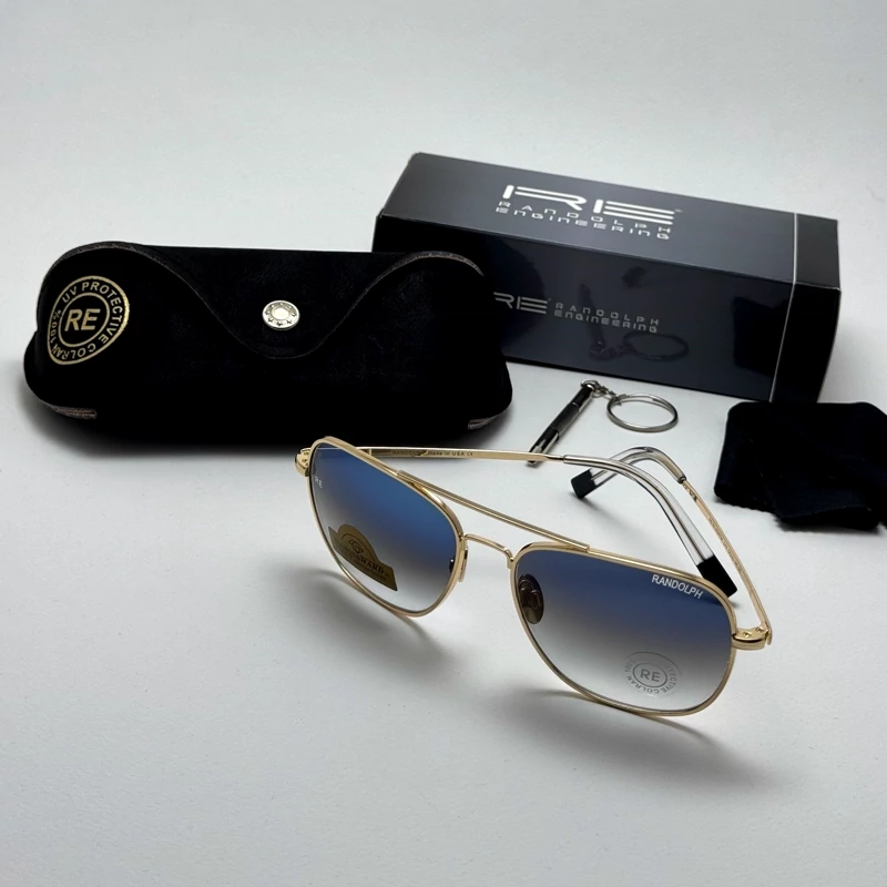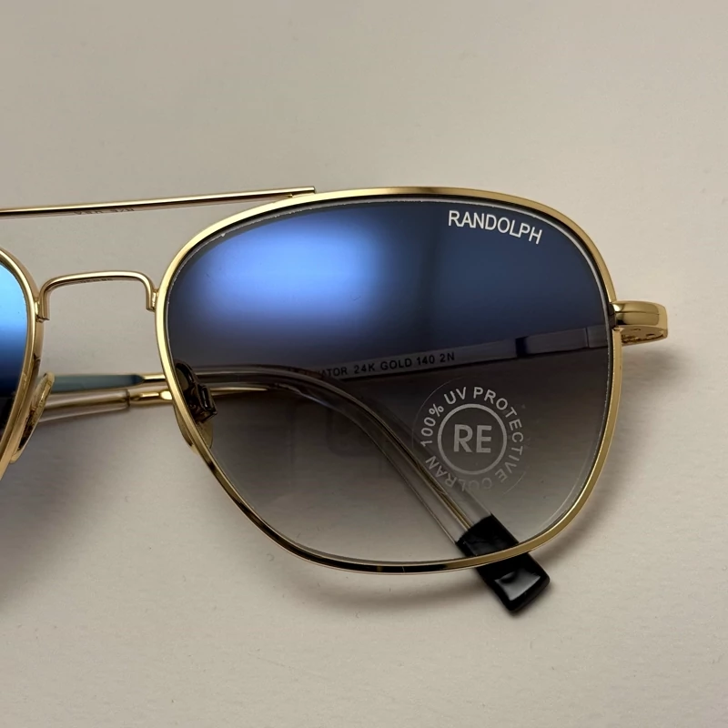 عینک آفتابی خلبانی رندولف شیشه سنگ آنتی رفلکس آبی هایلایت فریم طلایی فول پک اصلی RANDOLPH AVIATOR RE 58 24K GOLD
