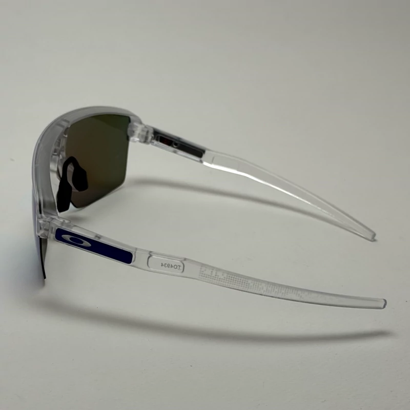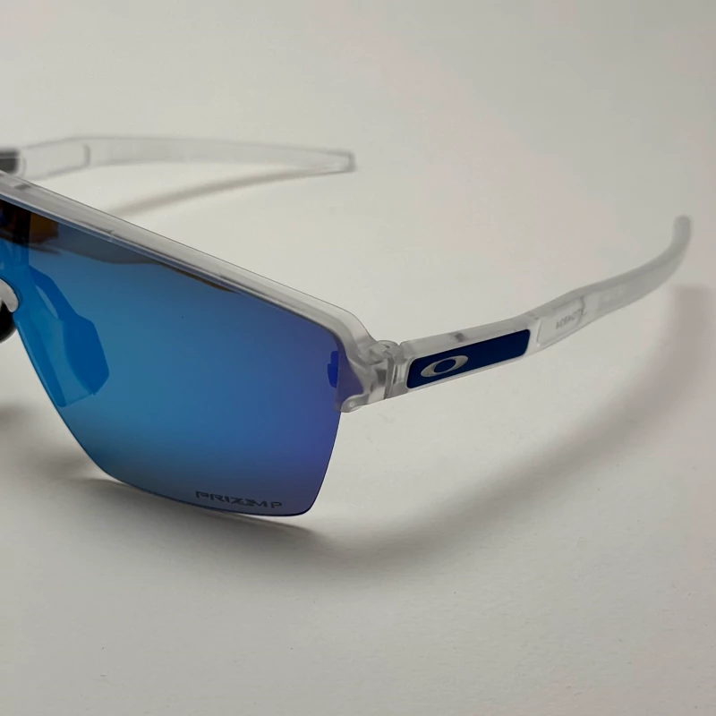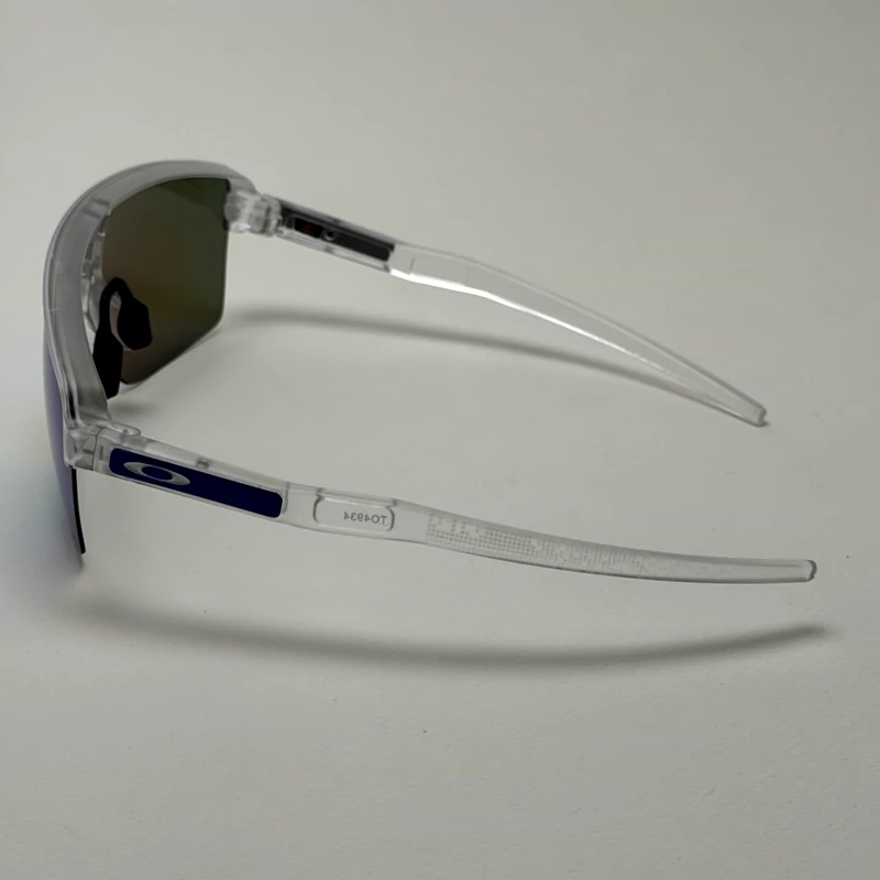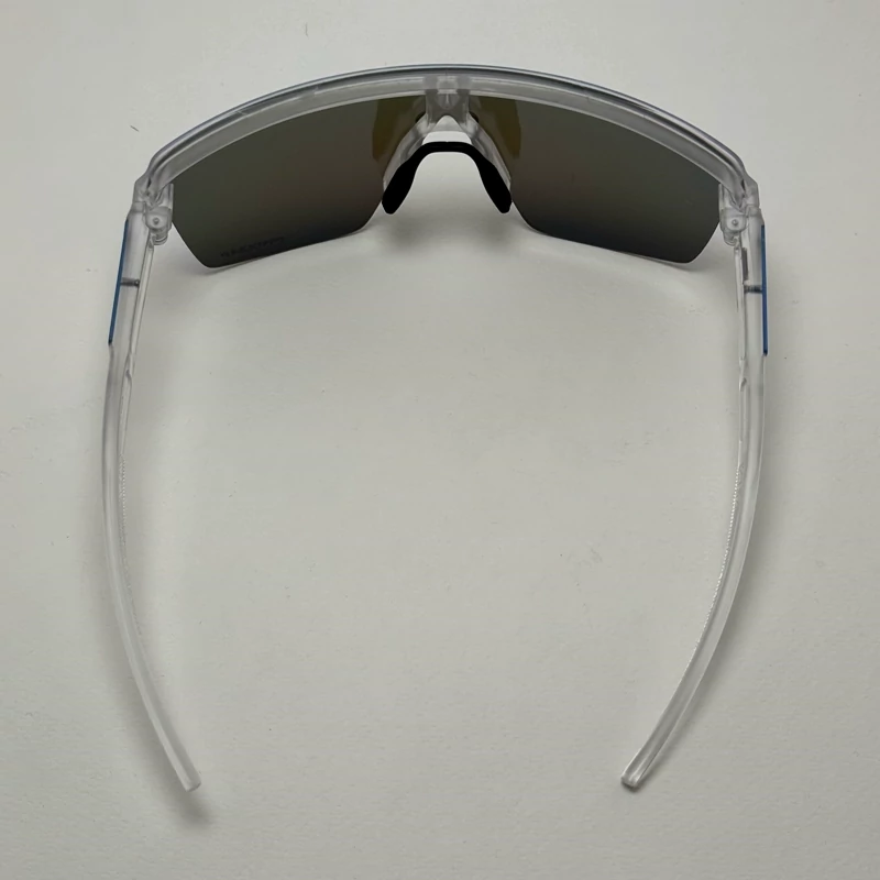 این عینک با ظاهر مدرن و فریم شفاف نیمهفریم (Semi-Rimless) طراحی شده که جلوهای اسپرت و آیندهنگر به آن داده است. لنز یکتکهی آینهای با طیف رنگی آبی، نه تنها چشمنواز است، بلکه پوشش کاملتری در برابر تابشهای محیطی فراهم میکند. فریم شفاف از جنس O-Matter™ ساخته شده که علاوه بر وزن سبک، مقاومت بسیار بالایی در برابر ضربه و فشار دارد.