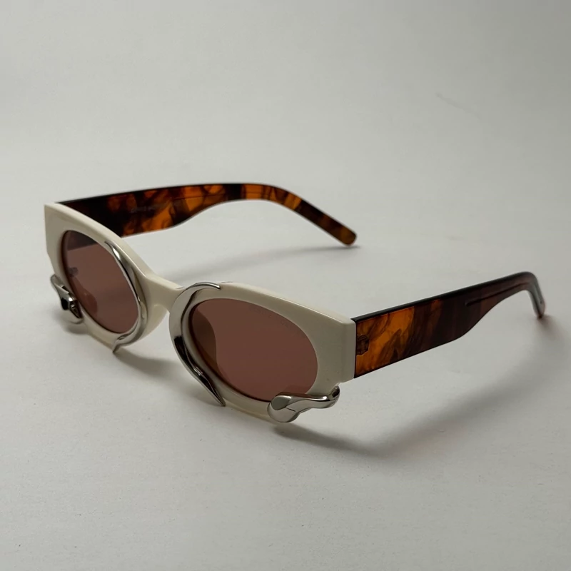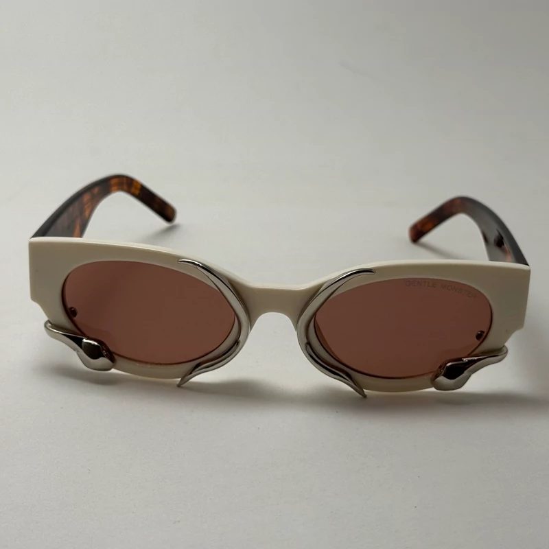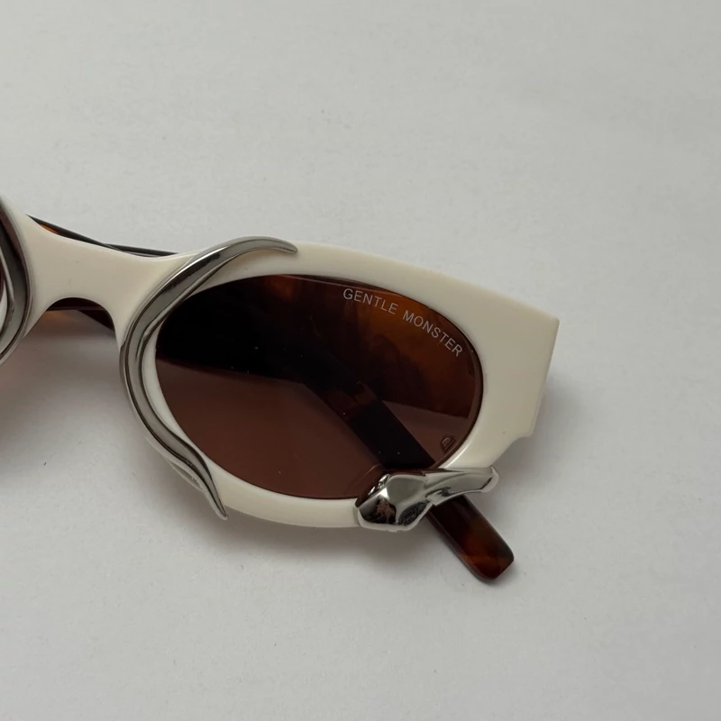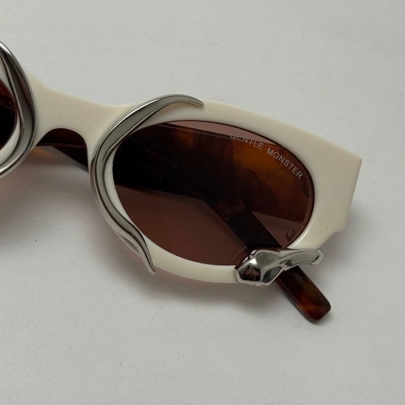 اگر دنبال یک عینک خاص، کمیاب و کاملاً متفاوت هستی، این مدل از برند Gentle Monster دقیقاً همون چیزیه که دنبالش بودی. طراحی این عینک ترکیبی از فرم بیضی کلاسیک با المانهای مدرن و اکسسوریهای فلزی غیرمتقارن هست که جلوهای سوررئال، هنری و آیندهنگر به چهره میده.