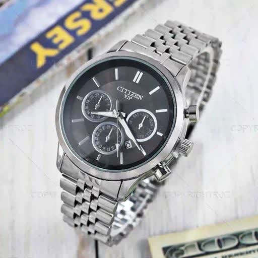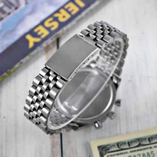 ✨ طرح کرنوگراف حرفهای 🔒 قفل کلیپسی راحت 📅 دارای روز شمار دقیق ⌚ بند استیل مقاوم و لوکس ⚡ موتور کوارتز با دقت بالا